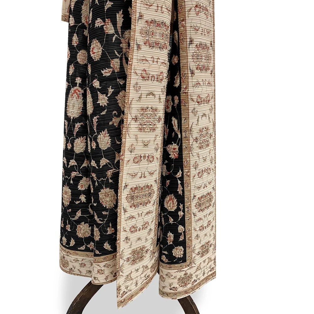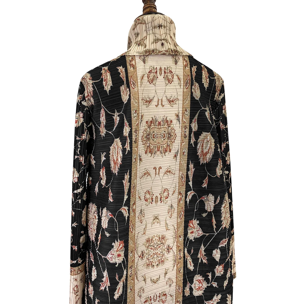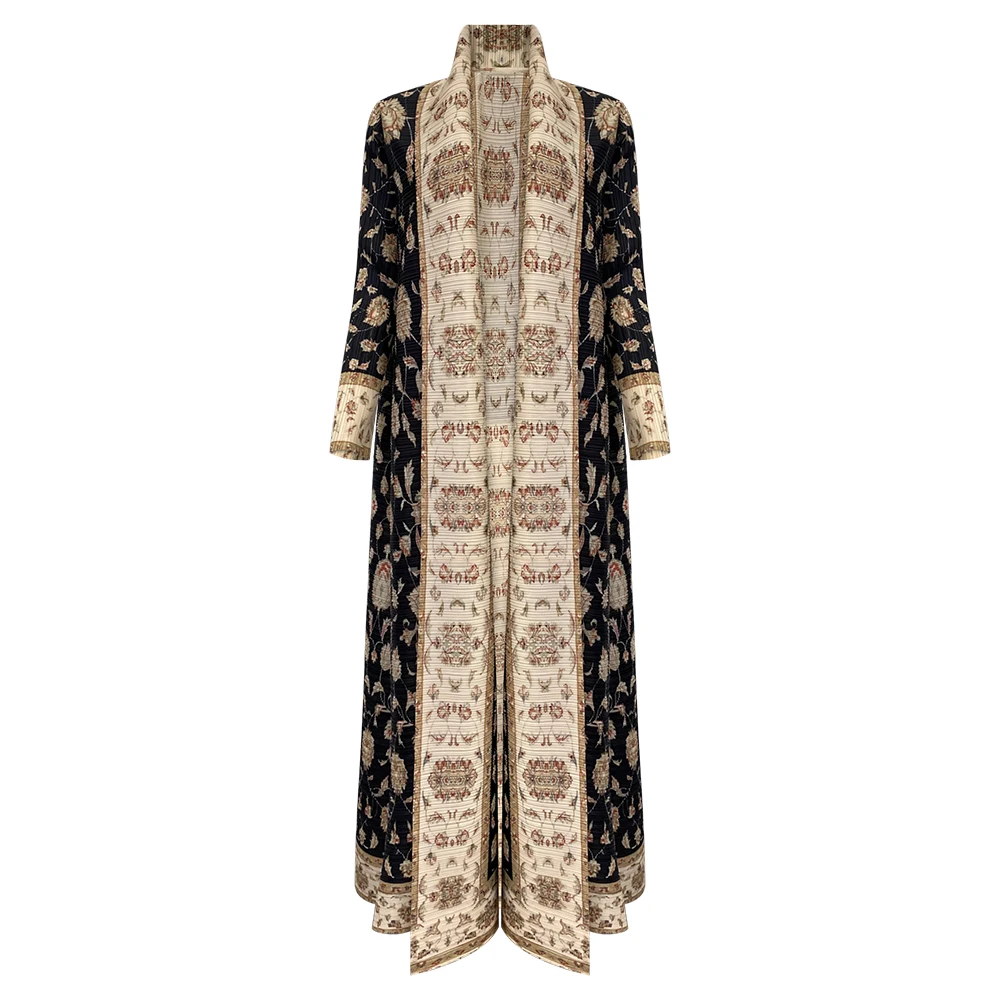 Miyake Abaya Pleated Turndown Collar Vintage Mid East Long Sleeve Dress Women New Printed Design Abaya Fashion Long Loose Coat